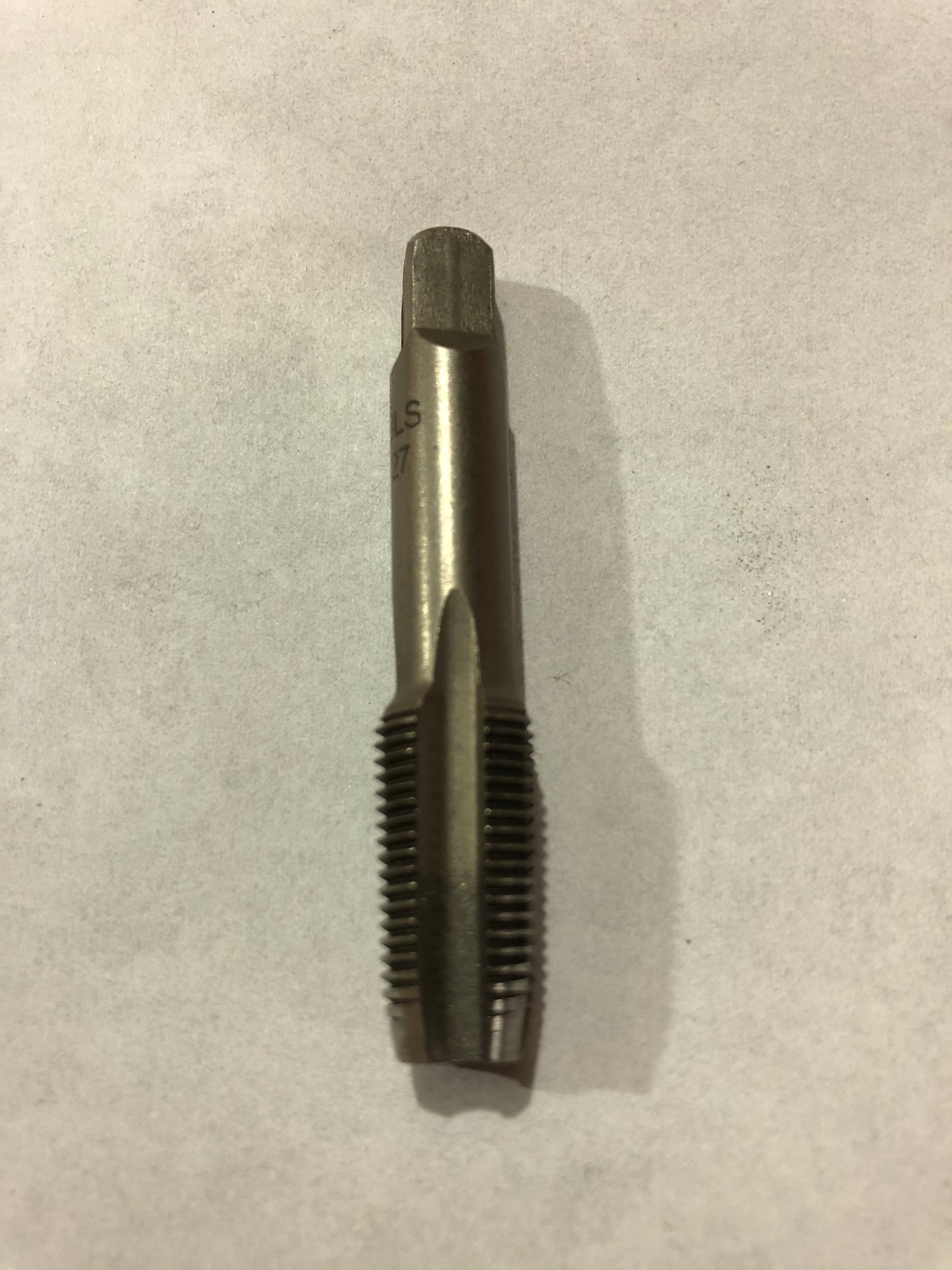1/8" (3,18mm) tap size with 27 threads per inch. The tap is used to create the threading for the compression fitting, which has an NPT of 1/8".